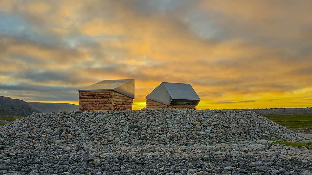 “Four of these contain seating areas with benches, one has a waste station, while the largest contains two toilet buildings. The architecture of the toilet buildings is inspired by traditional log houses combined with roof shapes that let the midnight sun into the buildings and reflect the surroundings”, says Broch Moe.