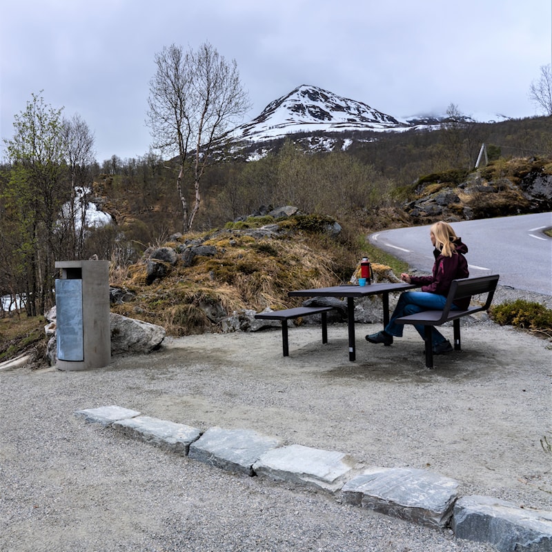 Den tidlegare parkeringslomma er no oppgradert til ein enkel rasteplass med plass til fire bilar og rastebord med universelt tilgjenge. På ein tilrettelagt sti med benkar kan publikum vandre ned til elva og komma seg inn til fossen på ein enklare sti.