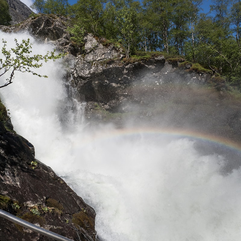 Øvstefossen, på spranget ned mot Hjelledalen, har imponert reisande i meir enn 100 år.