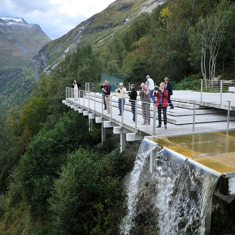 Heilt øvst ligg utsiktspunktet Ørnesvingen med sitt eige innebygde fossefall. Her kan du sjå mot bygda Geiranger, utover Geirangerfjorden med sine stupbratte fjellsider, fossane «Dei sju søstrene» og fjellgarden Knivsflå.