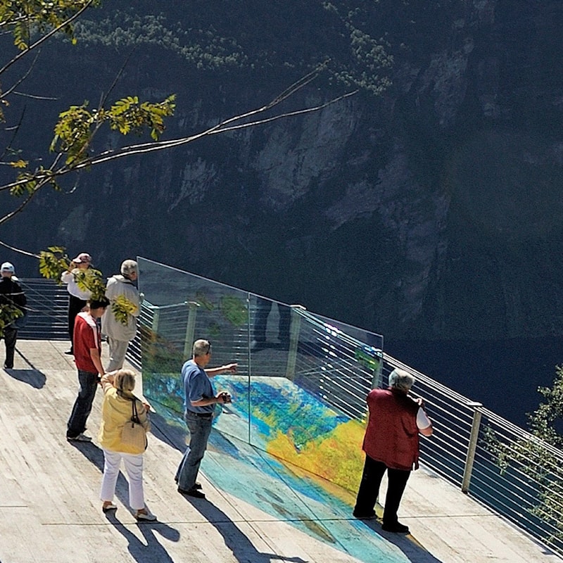 Utsiktsplattforma har ei utsmykking i glas laga av kunstnaren May Elin Eikaas-Bjerk.
