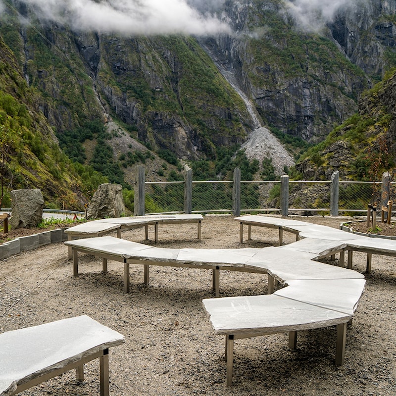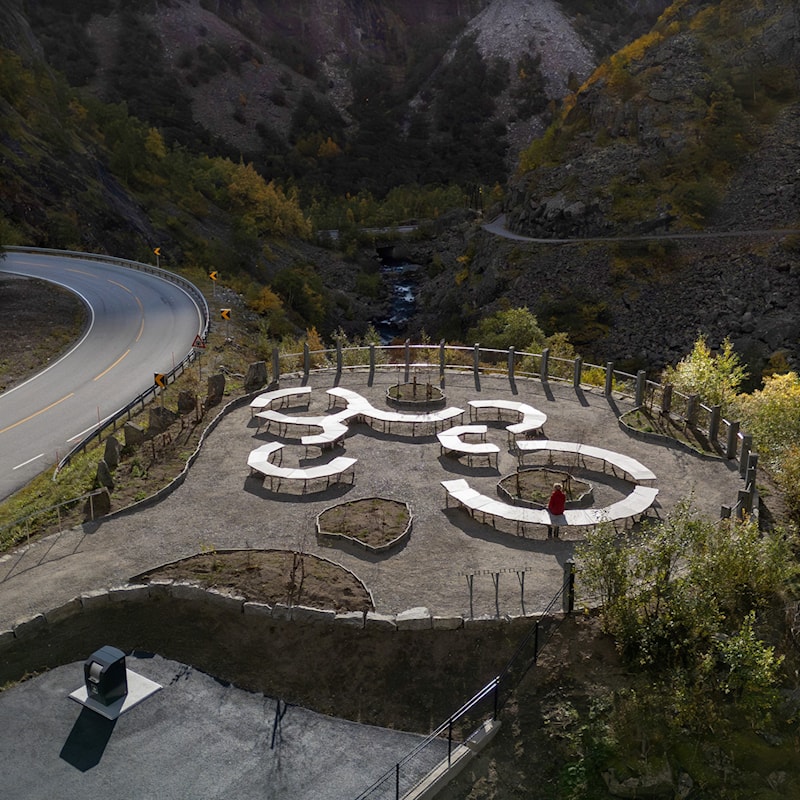 Den opphavlege rasteplassen frå 1990-talet er no oppgradert med sitjebenkar, plantning og universelt utforma tilkomst. Målet har vore å skape ein open og vennleg stad som inviterer til ein god pause i den vakre naturen. Her er det rydda forsiktig, fjerna nokre element og gjenbrukt andre.