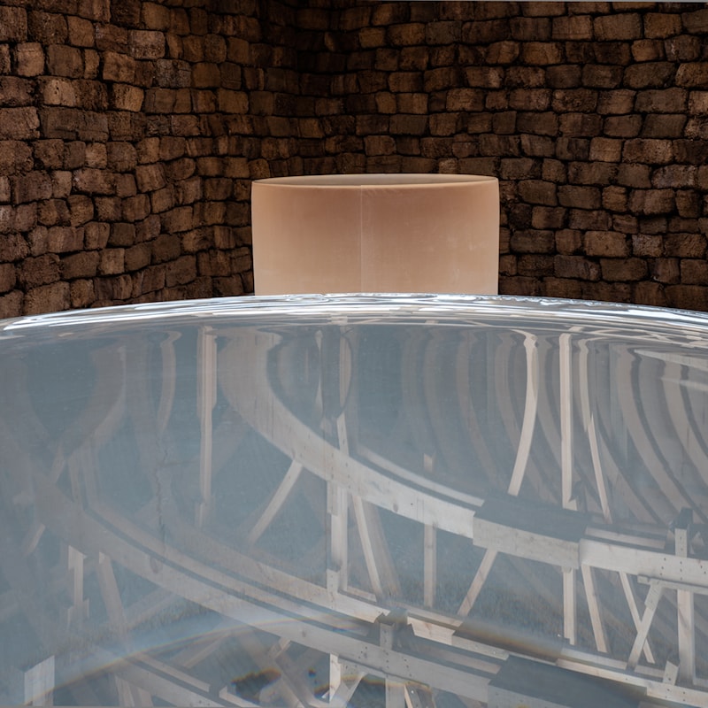 Bygget som omfavner og beskytter kunstinstallasjonen er en integrert del av kunstverket. Takstolene er viktige for helheten og formidler en naturfølelse, en form for trekrone som en beskyttelse over skulpturene og siler lyset.