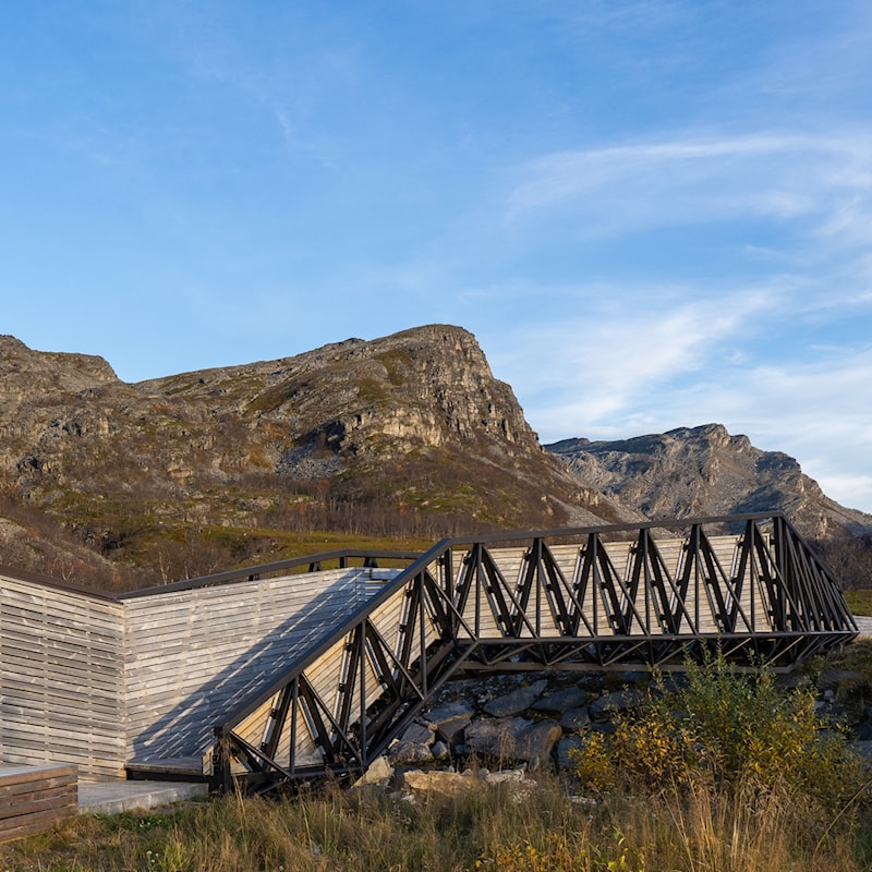 Brua over Fosseelva som renner ut i fjorden, er utformet med innebygd leskur, toalett og benker. Gangbrua markerer starten på stien langs Fosseelva og leder opp til "Kjærlighetsbenken" ved fossen i Lillefjord.