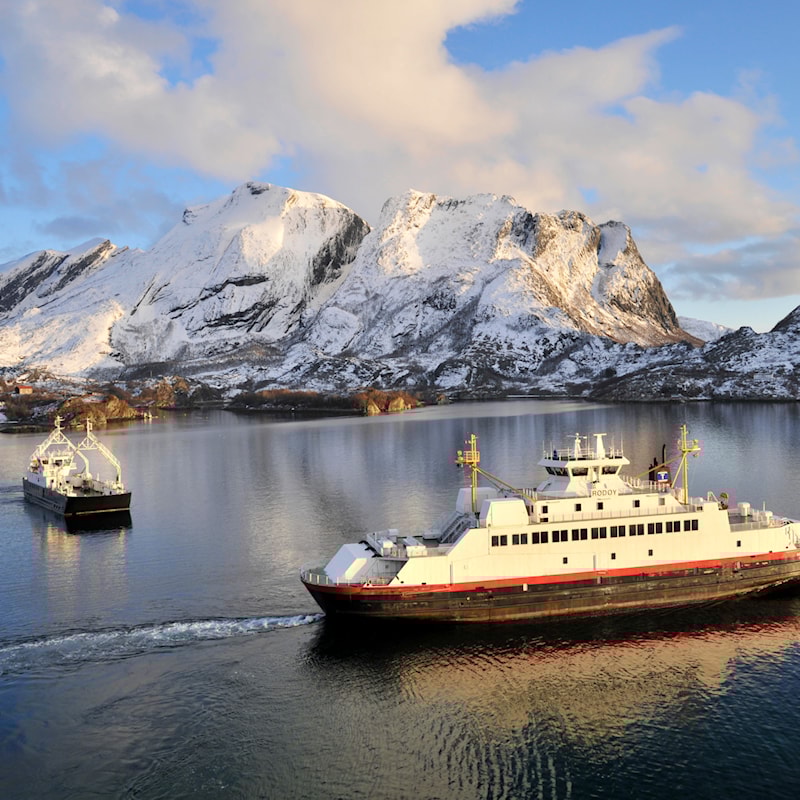 Venterommet ved fergekaia er kledd i gjennomskinnelig glassfiber som i mørketiden lyser som en stor kinesisk lykt. Herfra går det ferge til blant annet Kilboghamn.