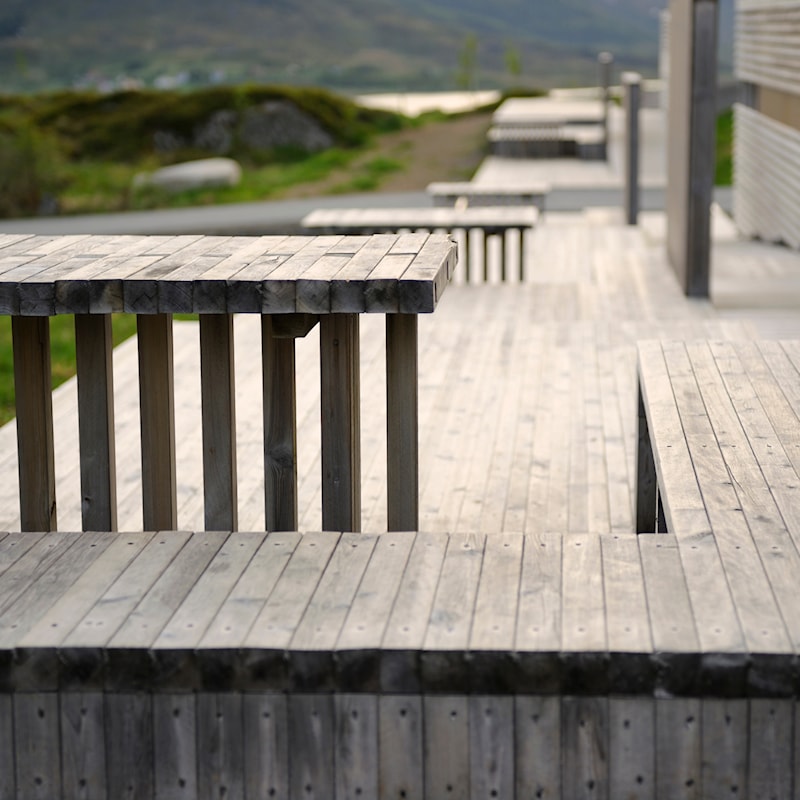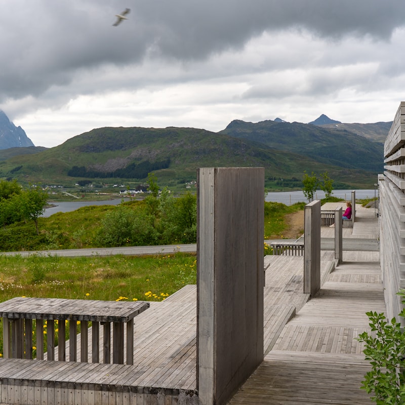 Derfra kan man se store landbruksarealer og Vikingmuseet på Borg. En lang levegg med benker fanger solvarmen og skjermer for vær og vind og samtidig kunne tilby stillhet og bekvemmelighet for reisende som nyter både mat og utsikt.