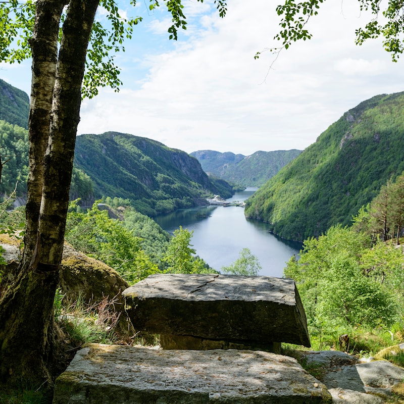 Gøymt inne i skogen finn du utsiktspunktet Lovra, sør for Sand i Suldal.