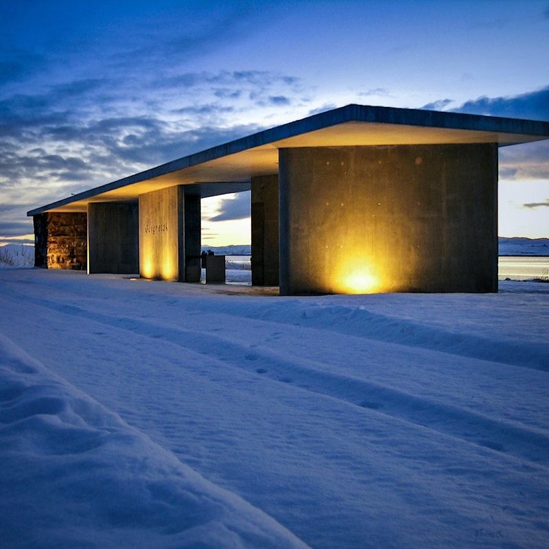 Toalettet er bygd i et gammelt restaurert steinhus som var ammunisjonslager under andre verdenskrig.