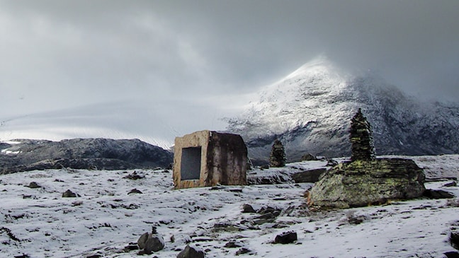På rasteplassen på Mefjellet kan du oppleve både den mektige utsikten over fjellheimen og kunsten til Knut Wold.